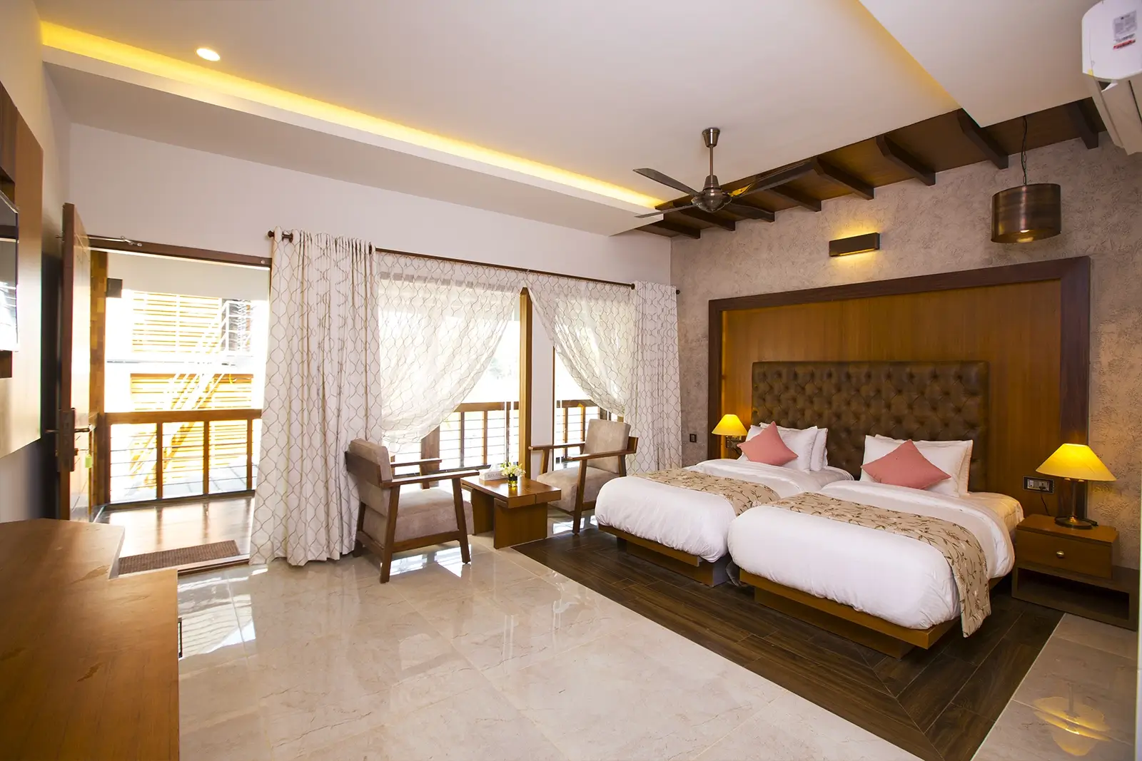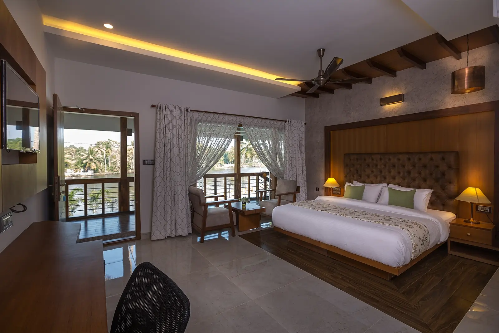 Blue Jelly Marina is a charming holiday home overlooking the serene Alappuzha backwaters. It features four well-equipped bedrooms, a backwater-facing swimming pool, an in-house restaurant, and a dedicated play area—ensuring a comfortable and enjoyable stay for all.